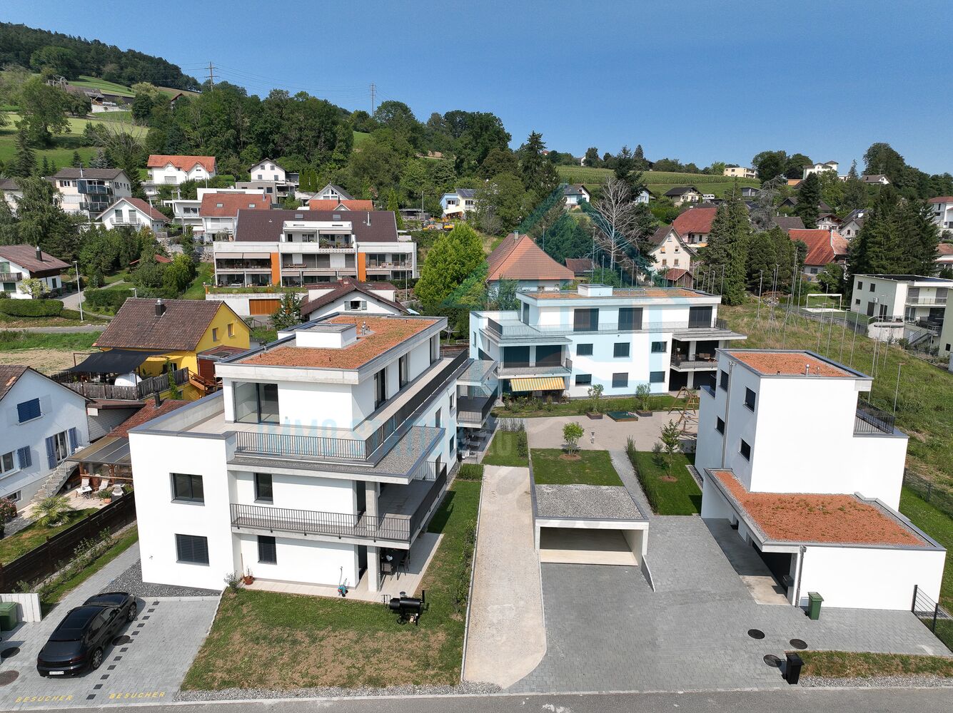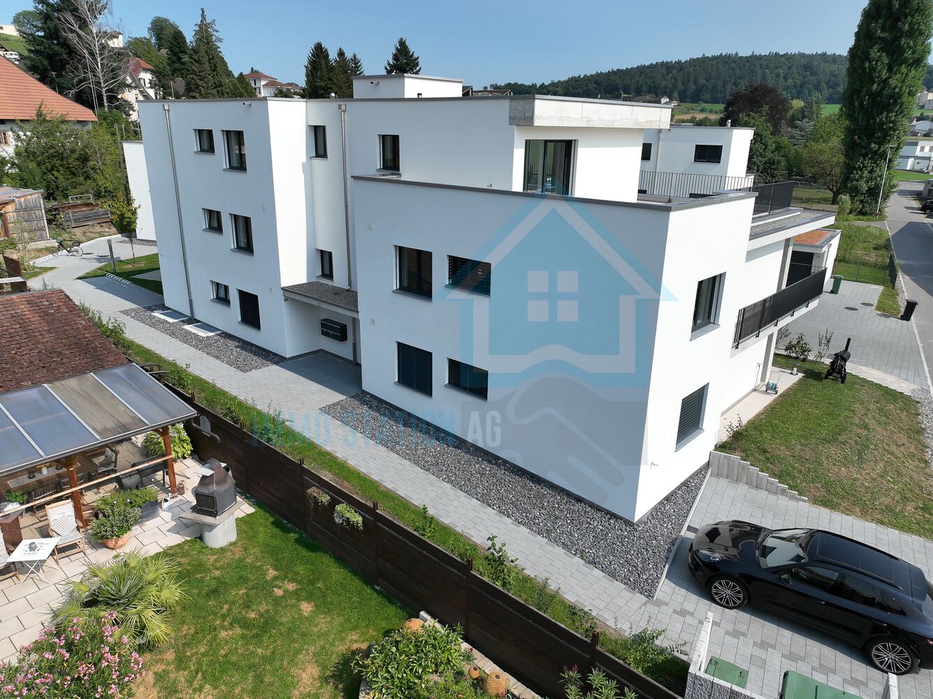 Diese attraktive 3.5-Zimmer-Wohnung im 1. Obergeschoss eines modernen 5-Familienhauses verbindet zeitgemässen Wohnkomfort mit naturnaher Umgebung und zentraler Lage – ein ideales Zuhause für Anspruchsvolle. Die klare Architektur überzeugt durch grosszügige, lichtdurchflutete Räume, eine hochwertige Ausstattung und ein durchdachtes Raumkonzept. Grossflächige Fensterfronten schaffen ein helles Wohnambiente, während der weitläufige, gedeckte Balkon mit direktem Zugang aus dem Wohn- und Essbereich zum Entspannen im Freien einlädt. Die Lage bietet Ruhe und optimale Erreichbarkeit: Einkaufsmöglichkeiten, Schulen, Freizeitangebote sowie der öffentliche Verkehr sind in wenigen Minuten erreichbar – perfekt für Paare, Berufspendler, kleine Familien oder Ruhesuchende.