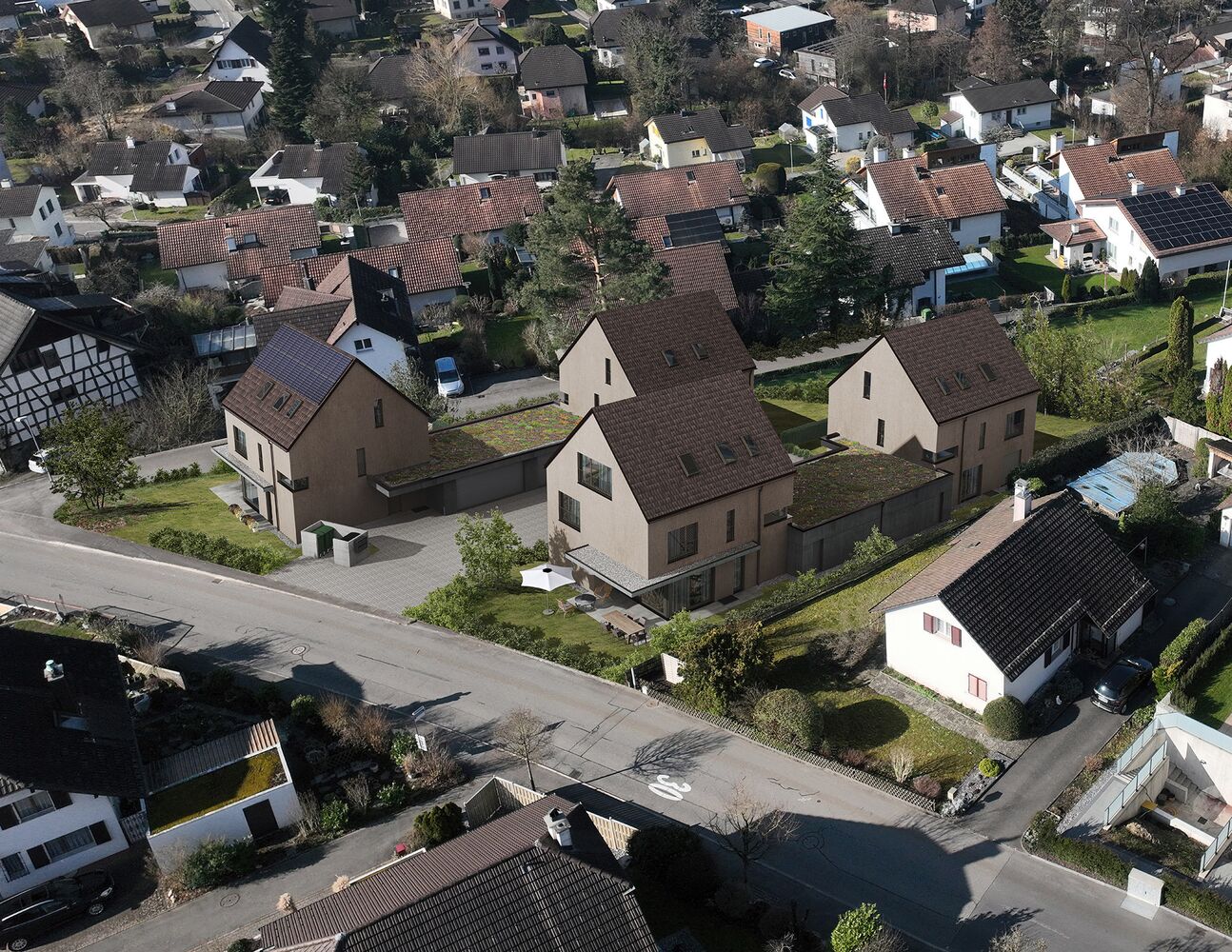 An sonniger und dennoch zentraler Lage entstehen vier freistehende Einfamilienhäuser, die modernes Wohnen mit einer naturnahen Umgebung vereinen. Die klare, zeitlose Architektur, grosszügigen Grundrisse und lichtdurchfluteten Räume schaffen ein Wohngefühl von Offenheit, Qualität und Wohlbefinden. Die energieeffiziente Bauweise – mit Vorbereitung für eine Photovoltaikanlage sowie Elektromobilität – steht für nachhaltiges und zukunftsorientiertes Wohnen. Hochwertige Materialien und ein durchdachtes Raumkonzept sorgen für ein Zuhause, das Design, Komfort und Funktionalität harmonisch verbindet. Der offene Wohn- und Essbereich mit direktem Zugang zur sonnigen Gartenterrasse bildet das Herzstück des Hauses – ideal, um den Alltag entspannt zu geniessen und unvergessliche Momente mit Familie und Freunden zu erleben. Grosszügige Fensterfronten schaffen eine helle, freundliche Atmosphäre und verleihen dem Haus eine hohe Wohnqualität – ein Ort zum Ankommen und Wohlfühlen. Diese Einfamilienhäuser vereinen moderne Architektur, Energieeffizienz und hohen Wohnkomfort – perfekt für Menschen, die nachhaltig denken und stilvoll leben möchten.