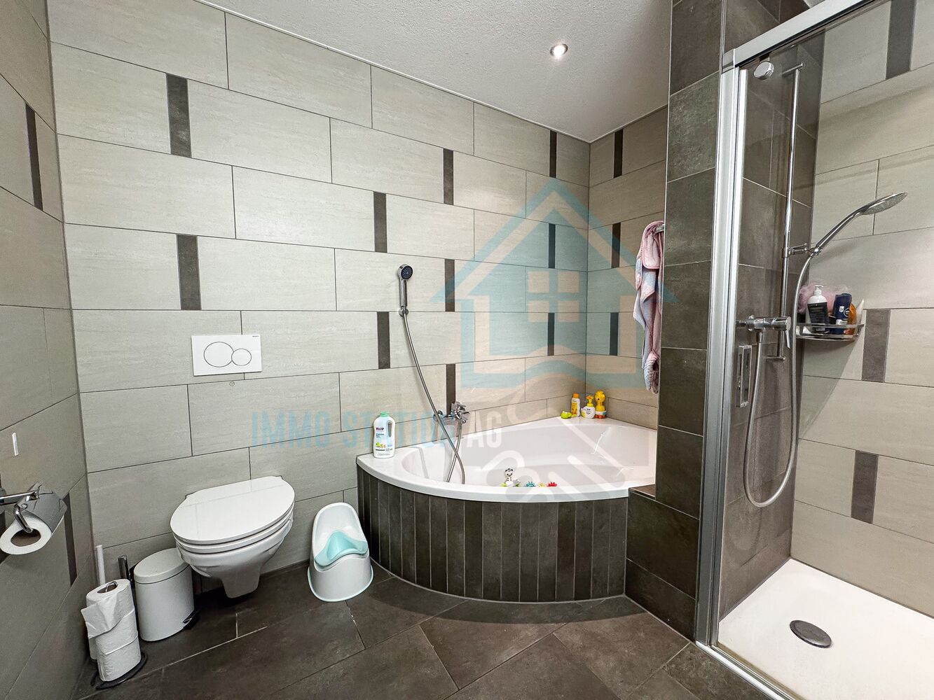 - Moderne Nasszelle mit Bad, Dusche und WC