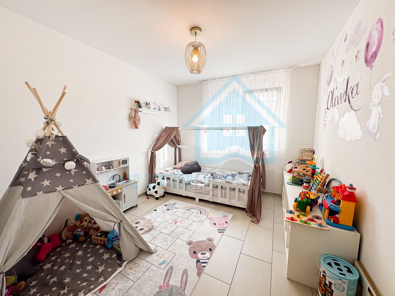 - Hochwertige, pflegeleichte Fliesenböden in der gesamten Wohnung